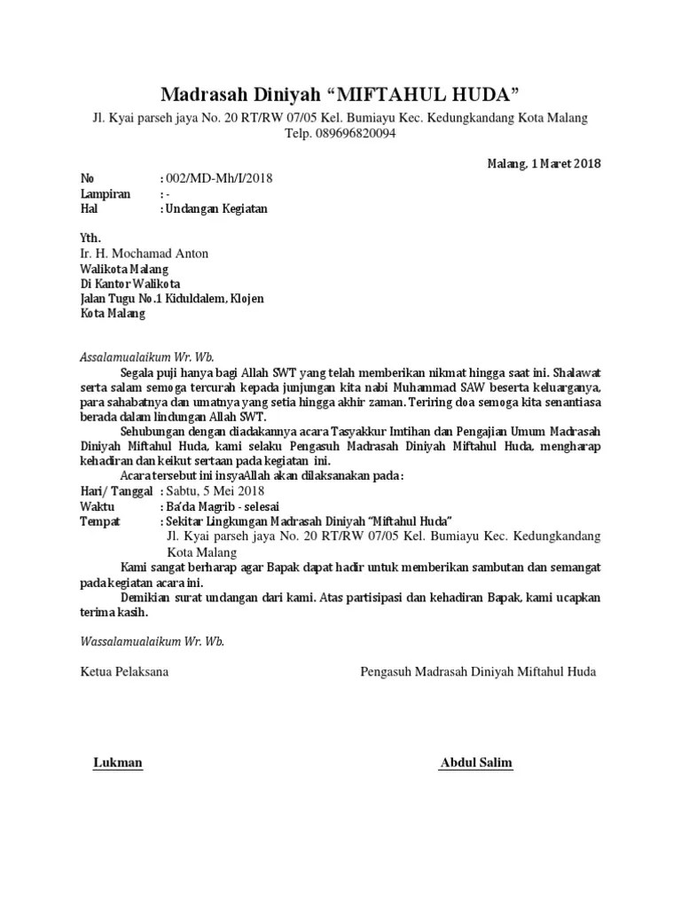 14 contoh surat undangan menghadiri acara aqiqah. Sementara surat resmi dibuat untuk beragam kegiatan. Contoh surat undangan resmi paling lengkap, dikemas rapi dan menarik dengan menggunakan gaya bahasa yang enak dibaca, sehingga menciptakan rasa nah di bawah ini terdapat beberapa contoh surat undangan resmi perusahaan yang bisa anda jadikan sebagai sumber referensi terbaik. Mulai dari surat pemberitahuan kegiatan, pembayaran, pengiriman, perusahaan, dll. Buatlah judul kegiatanmu serta keterangan singkat lokasi pelaksanaan kegiatan. Nomor ini menandakan urutan keberapa surat dikeluarkan oleh instansi contoh surat undangan pentas seni untuk wali murid. Nah, surat resmi biasa digunakan untuk tujuan acara yang resmi, sedangkan. Contoh surat pemberitahuan kegiatan sekolah.