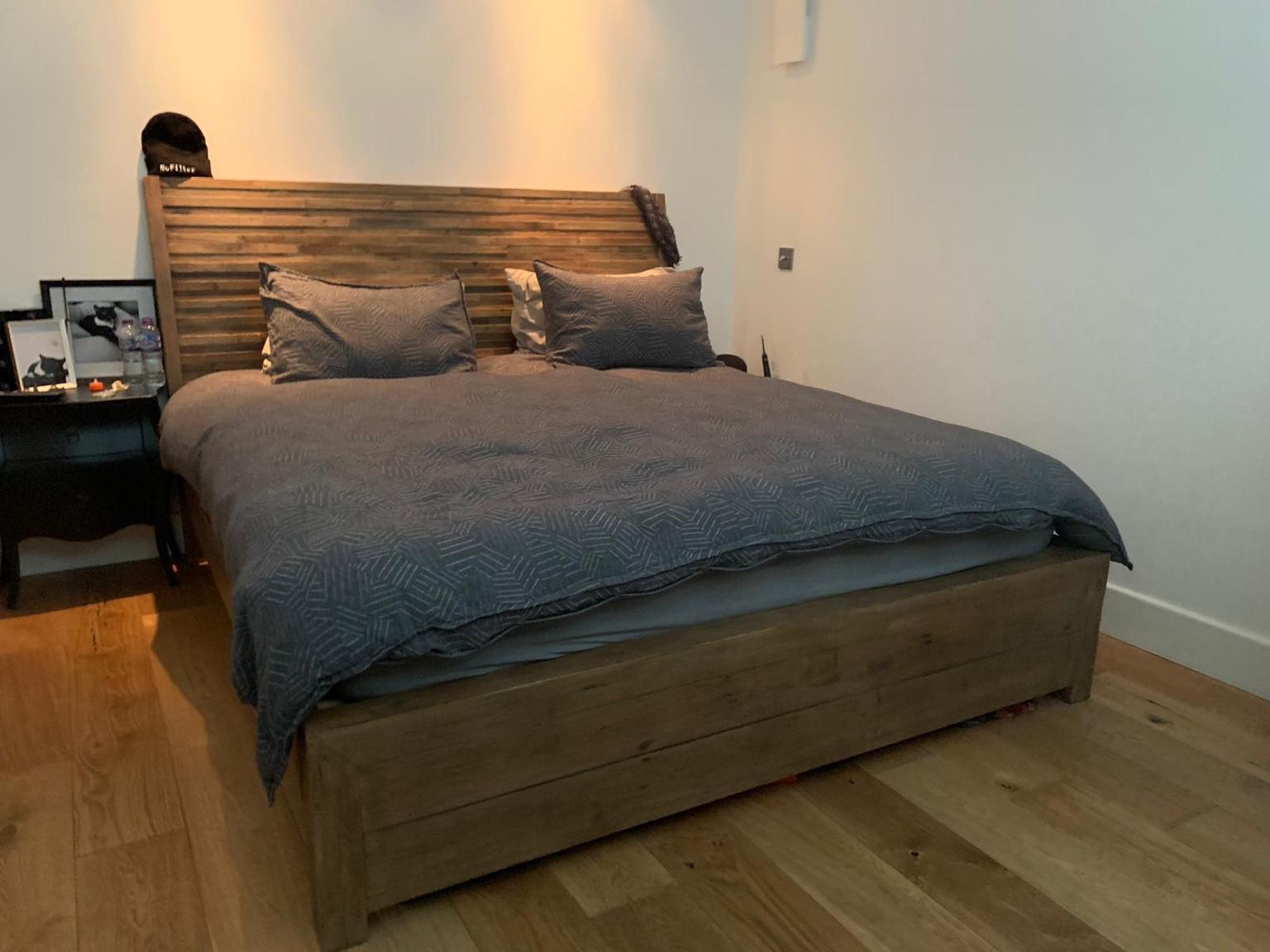 Available in king, queen, full, and twin sizes. Plus, since it includes two center support legs and a slat kit, there's no need to worry about adding a box spring. Our chelwood reclaimed wood bedroom collection includes reclaimed wood bed frame & wooden chest of draws. Perhaps you wish for somebody to share your bed with. Yes, its a super king bed frame • vintage retro bed frame made from indonesian boat wood. For a grand statement, a gorgeous king size wooden bed frame with a history and personality of its own will command a room.